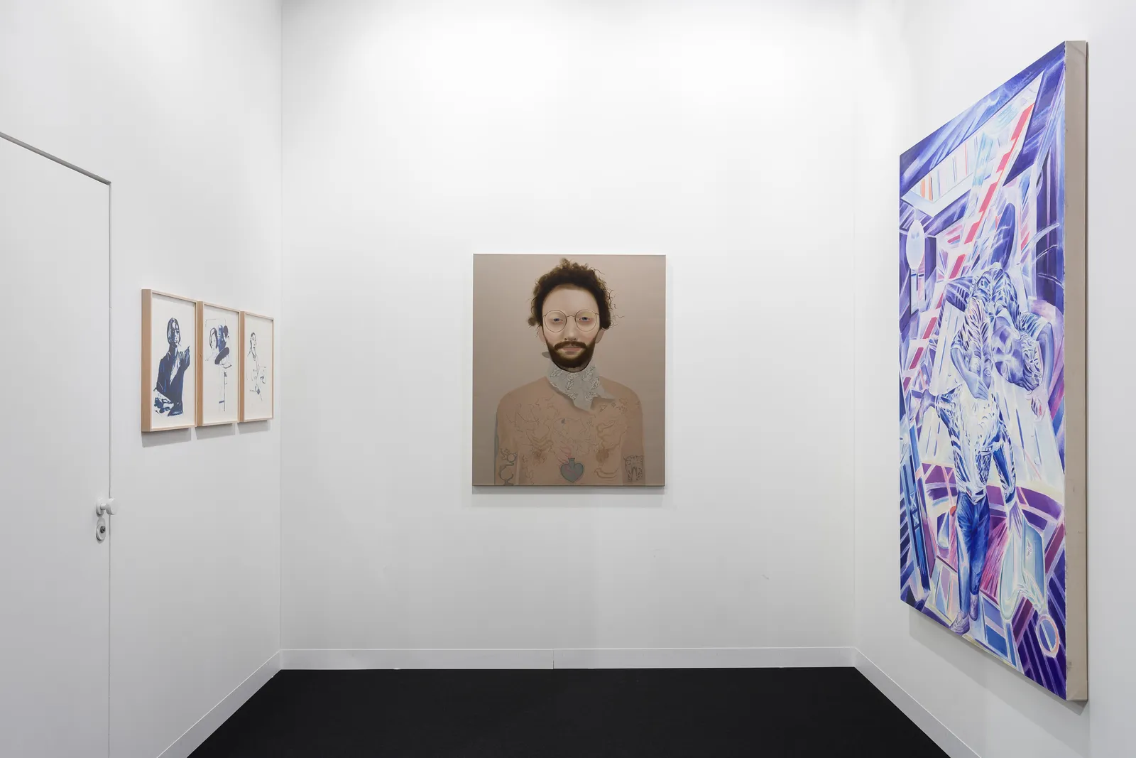 The gallery has expanded its programme over the past year, with new additions to its roster including Marina Adams, Sarah Ball, Leilah Babirye, Holly Hendry and Caroline Walker. The presentation features a new work by Adams, which incorporates vibrant shapes arranged in abstract configurations. The artist’s solo exhibition ‘Wild Is Its Own Way’ opens at the gallery in September 2021 with a series of vivid large-scale paintings. Following her first exhibition at the gallery and in Europe, Ugandan artist Leilah Babirye presents a new wooden sculpture that addresses issues surrounding identity, sexuality and human rights. New works by British artists Sarah Ball and Holly Hendry are also exhibited ahead of their respective solo shows at the gallery in January 2022. A meticulously rendered portrait of a tattooed man by Ball examines themes of gender and identity, whilst Hendry’s new sculpture is concerned with the interior workings of the human body. New works on paper by Caroline Walker offer a unique window into the diverse experiences of women living in contemporary society. A solo exhibition of the artist’s work is currently on view at KM21, The Hague in The Netherlands.