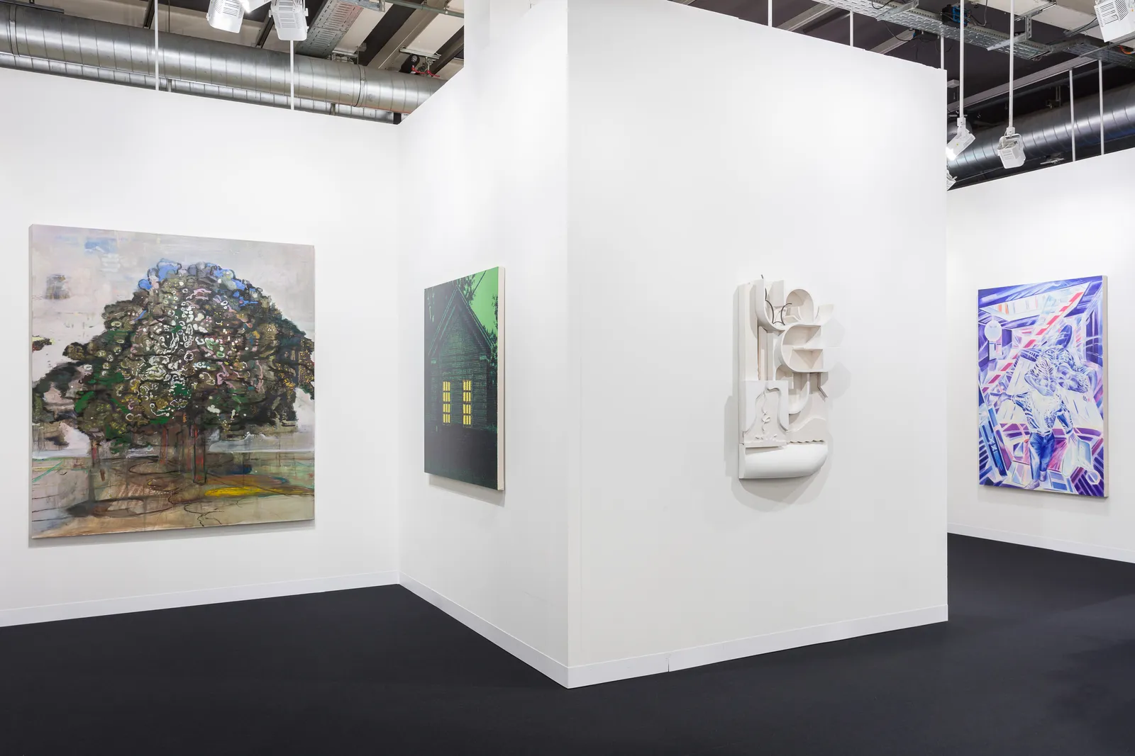 The presentation also reflects the gallery’s long-term interest in art from South America with a painting by Luiz Zerbini which captures the immersive and seductive quality of the Brazilian landscape.