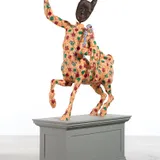 Fibreglass sculpture, hand painted with Dutch wax pattern with hand carved wooden mask