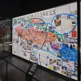 Included in the exhibition is Thomas Hirschhorn's collaborative work with German philosopher Marcus Steinweg, 'Map of Headlessness', 2011. This work is part of a series of 'Maps', complex diagrammatic compositions which include ‘The Map of Friendship between Art and Philosophy’ and 'Nietzsche – Map'. Co-opting collage as a method of reinterpretation and critique, the ‘Maps’ combine an array of resources drawn from popular media, literary and philosophical texts to reveal connections between diverse intellectual themes.