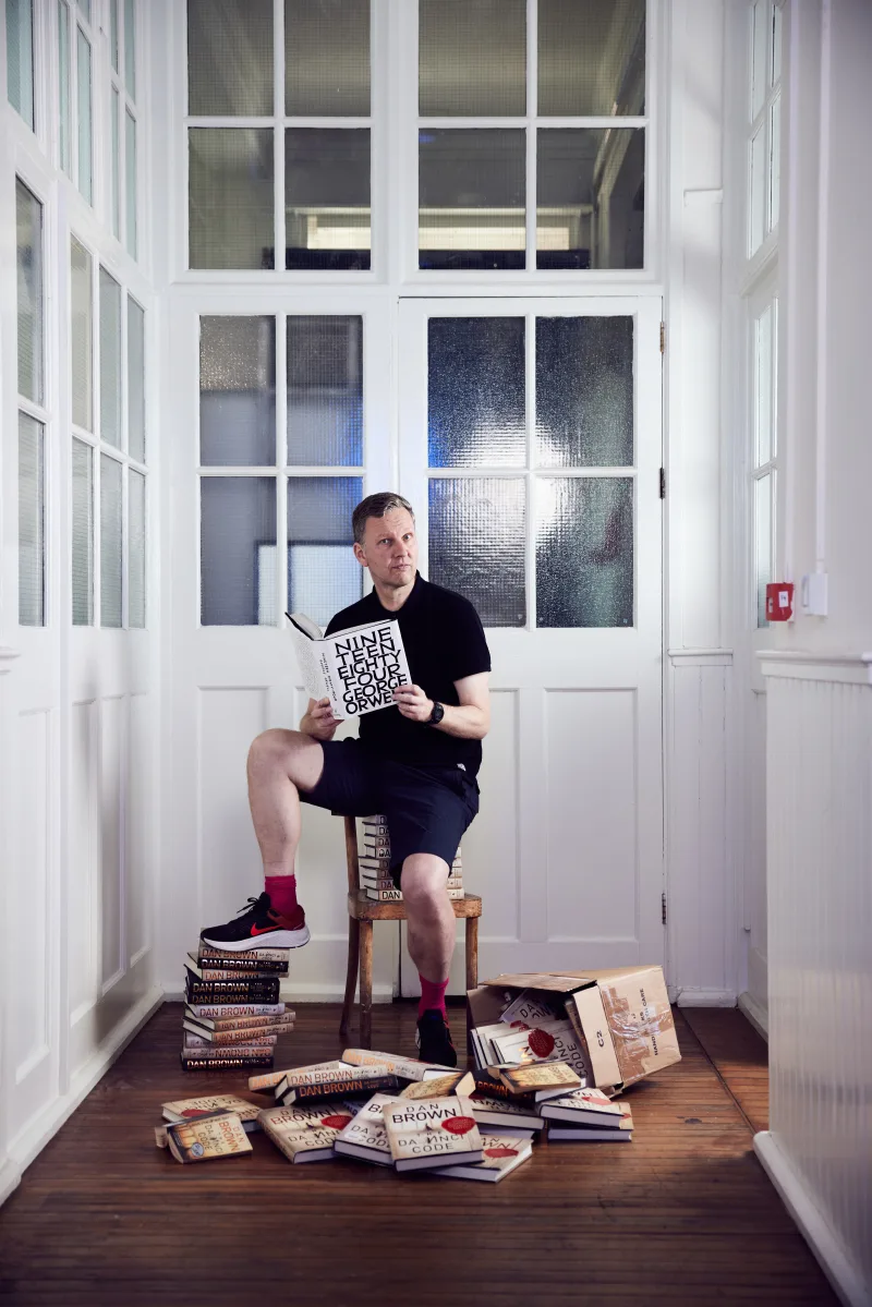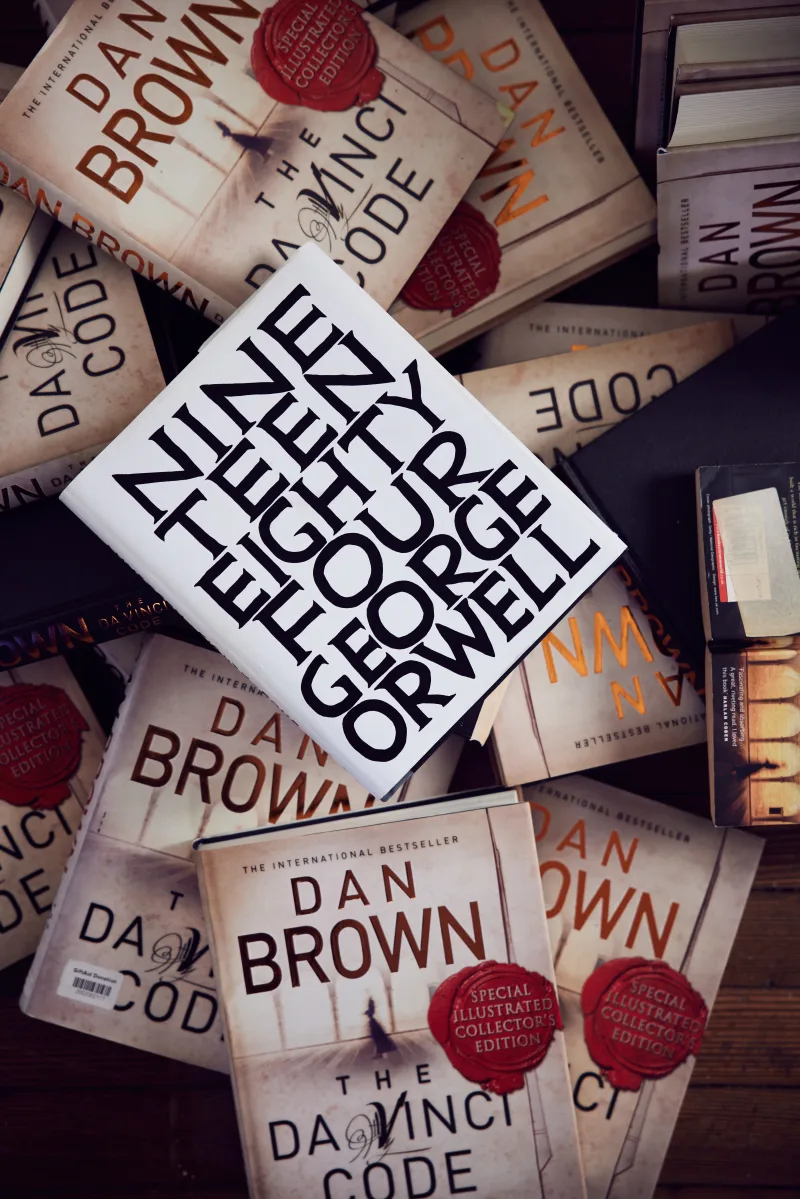 David Shrigley upcycles thousands of unwanted Dan Brown novels into new, limited-edition Nineteen Eighty-Four.