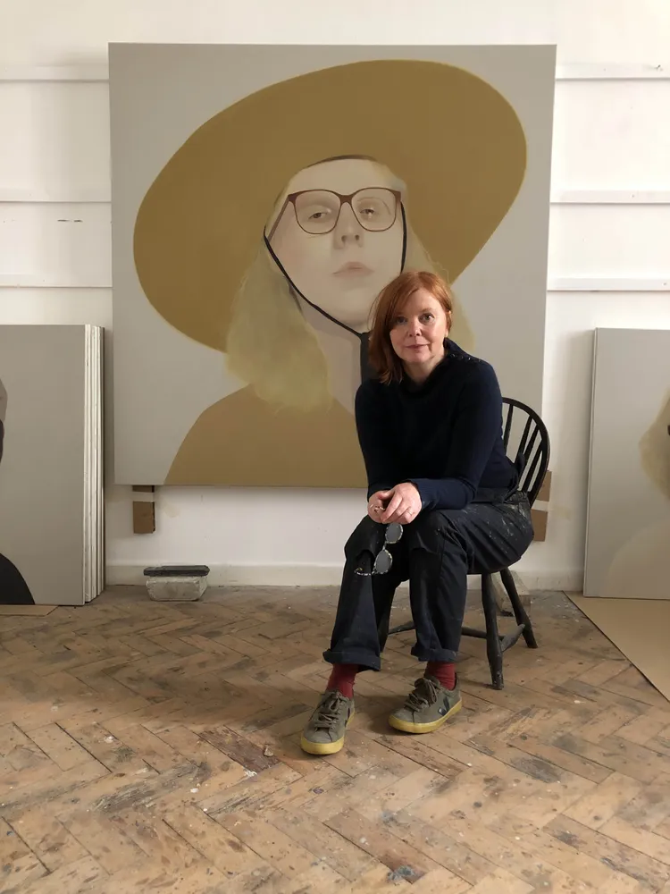 Ball uses source material such as newspaper cuttings, archival photographs and social media to inform her portraits. Often depicting people who celebrate self-expression and contest traditional binary norms, Ball highlights physiognomy, hairstyles, clothes, jewellery and make-up that reveal the idiosyncrasies of her anonymous, often unknowing sitters. Set against flat planes of colour and confined within closely cropped compositions, the artist lends the people within her work a surreal, timeless quality by denying the viewer any form of narrative about their identity.