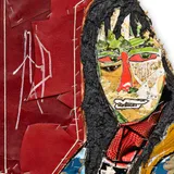 Mixed material including wire, nails, staples, metal, fabric, plastic, latex, oil paint, oil stick, oil pastel and charcoal on wooden panel