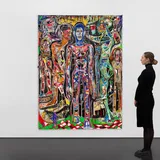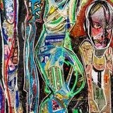 Mixed material including wire, nails, staples, metal, fabric, plastic, latex, oil paint, oil stick, oil pastel and charcoal on wooden panel