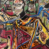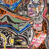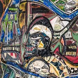 Mixed material including wire, nails, staples, metal, fabric, plastic, latex, oil paint, oil stick, oil pastel and charcoal on wooden panel