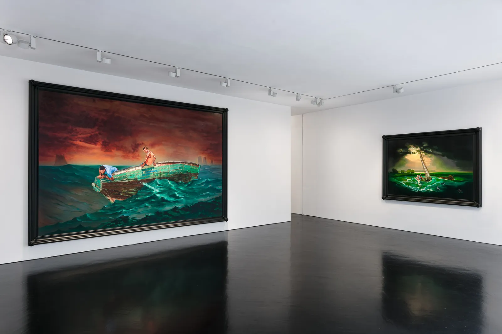 In developing this compelling body of work, Wiley reinterprets seascapes by J.M.W. Turner, Winslow Homer and Hieronymus Bosch, and drives forward a striking new visual style that pronounces his unparalleled painting skill. This new series retains Wiley's familiar figurative aesthetic and at the same time expands the scope and ambition of his painting.