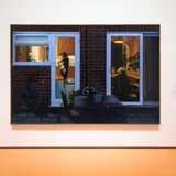 Walker's painting Roundmoor Drive traces the daily life of her sister-in-law Lisa as she becomes a mother. Whilst this composition conveys a voyeuristic element, Walker belongs to a tradition of female artists who show the world differently from the masculinised position of eroticised peeping that has historically dominated paintings of women.