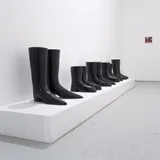 David Shrigley: 'Lose Your Mind' is a comprehensive exhibition that highlights the breadth of David Shrigley’s practice and his darkly witty imaginings. Key works include Ostrich, 2009, a new acquisition for the British Council Collection, in which a taxidermied bird loses its head and gains a droll menace. Other mirthful objects include Beginning, Middle and End, 2009, a ‘giant continuous sausage’ crafted from clay that is rolled out and arranged in the gallery and Cheers, 2007 a pair of fishing waders filled with expanding foam.